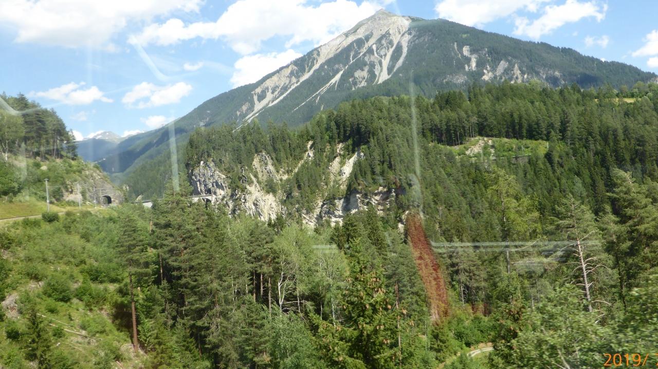 現在は氷河特急にまとめられていますが、前半のディッセンティスまでのマッターホルンゴッタルド鉄道(スイス国鉄)とそれ以降のレーティッシュ鉄道(私鉄)がつながったものです。また、クールからサンモリッツまではベルニナ急行(レーティッシュ鉄道の観光列車)と並走しています。後半、ツゥージスから サンモリッツまではアルブラ線といって、たくさんの橋、カーブ、トンネルが続く見所(世界さん)となっています。一番有名なのが、ランドバッサー橋ですね。高さ65m。