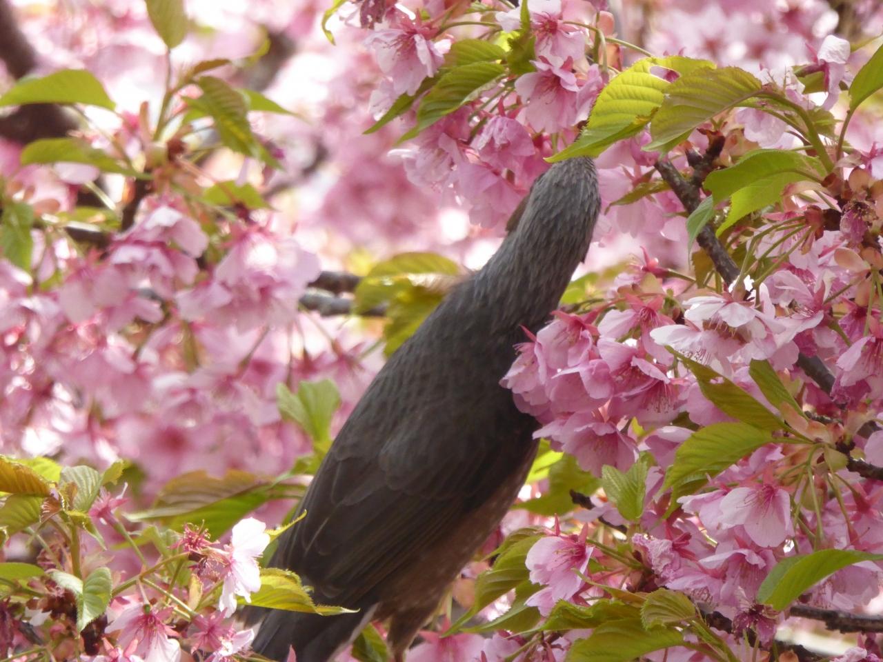 周りはヒヨドリが桜の蜜を吸いに来ています。