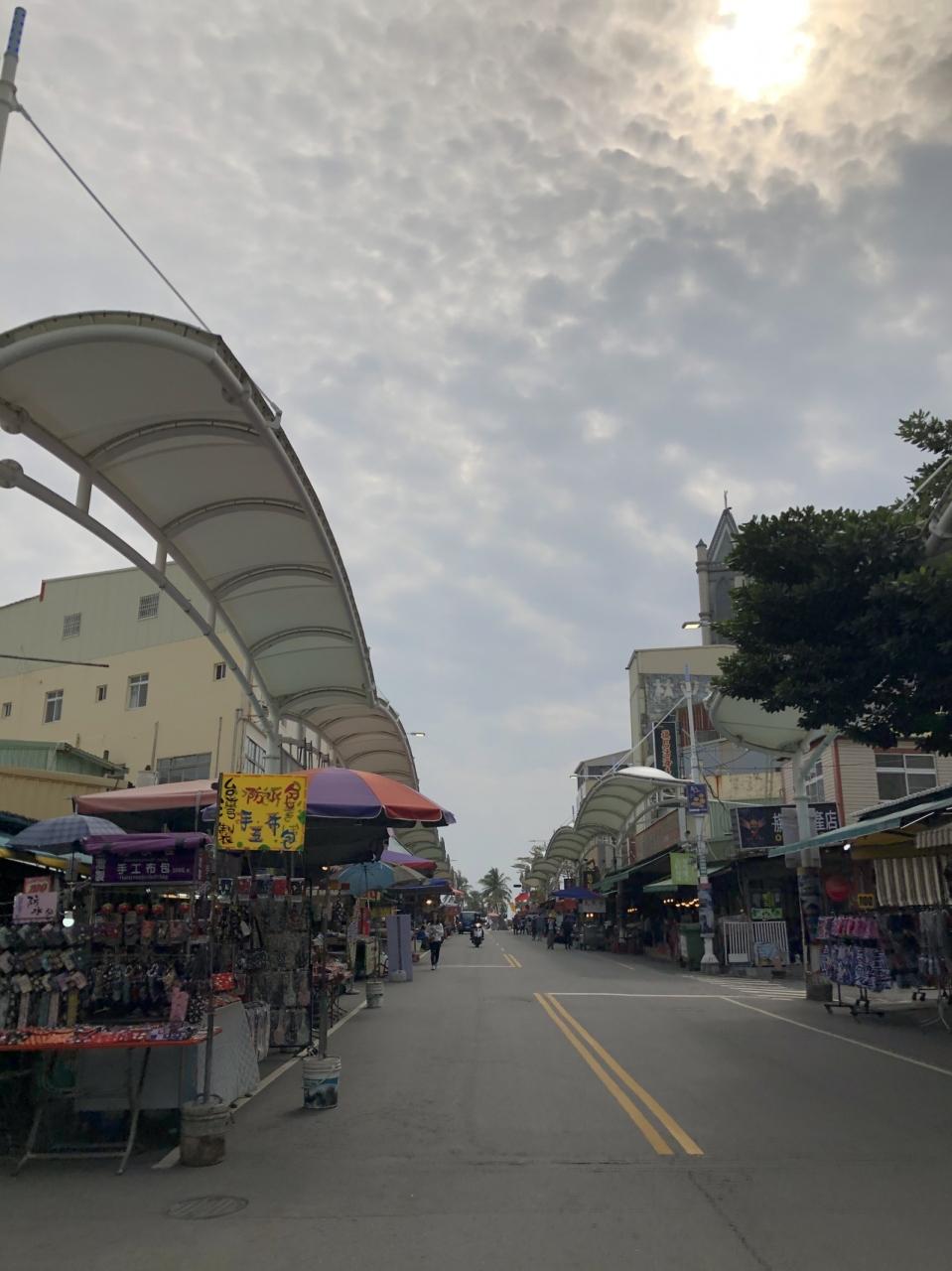 フェリー乗り場からまっすぐ歩くと商店街てきなストリートに出ます。旗津老街です。