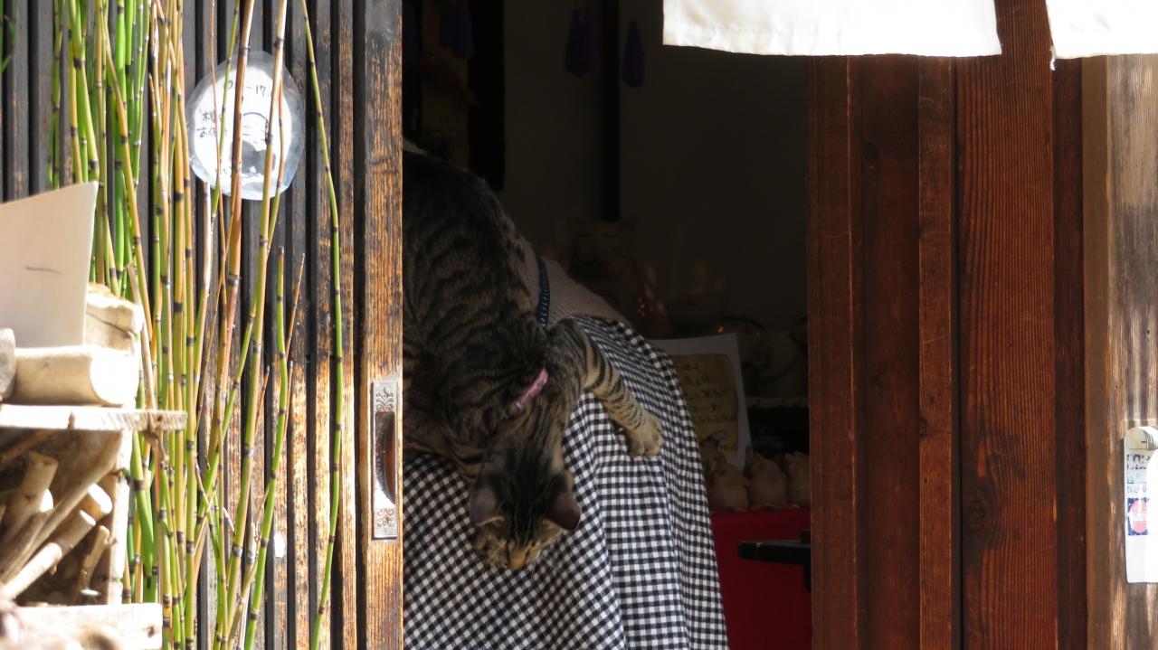 お母さんの背中にへばりついているにゃんこは、このお店の店長見習い中の「みるちゃん」 -