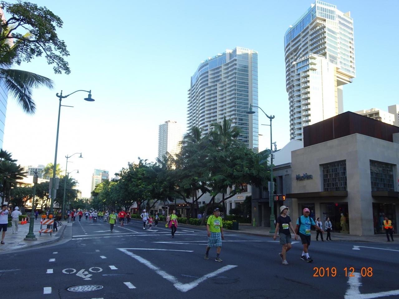 本日はホノルルマラソンのため、ホテル前までタクシーが入ってこず、クヒオ通りの方まで歩いていかなければなりません -