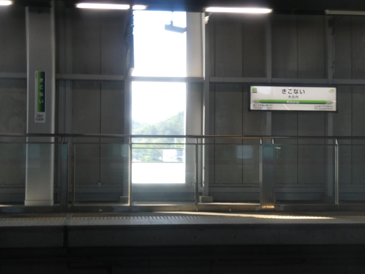 車内からだけなので、駅の様子はありませんが、その後に木古内駅で在来線から乗り換えた際の旅行記があります。