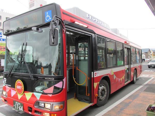 バスそのものは普通の路線バスと同じ車体です。BRT大船渡線 (バス高速輸送システム) 乗り物
