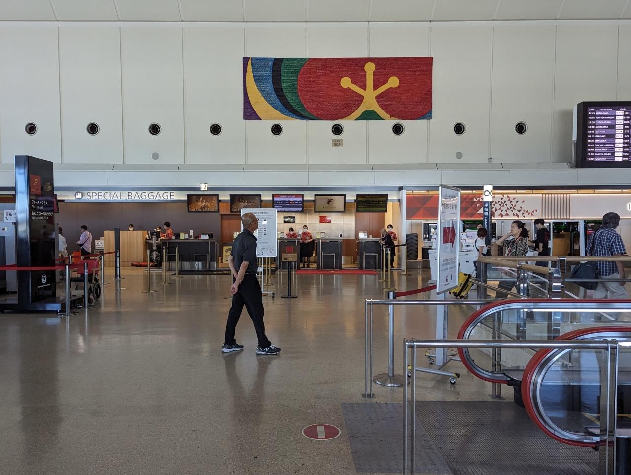 16:49にレンタカー待合所に到着。この辺りは小規模のレンタカー会社の特徴であり、それなりに大きな会社だと3階の出発ロビーに送ってくれるものだ。という訳で文句を言う訳にも行かず3階迄エスカレーターで上がってチャックインロビーに向かう。いつもならば〝もう終わりか~〟のため息しかない帰りの那覇空港ではあるが、今回に限ってはもうひとつ〝お楽しみ〟が残っている。因みに今日のJL2088大阪伊丹行きはA350-900のトリプルクラスでの運航となっている。エコノミーは若干空きはあるようだが、ファーストクラス・クラスJとも満席と表示されていた。いつもならば左のカウンターに進み荷物を預け、前方席のリクエストをするのだが、今回は右側のカウンターへと進む。ファーストクラス(??>?<?)。??。私の辞書にはない言葉ではあるが、今回に限って付け加える。なんとファーストクラスで大阪に向かうのである。私のような中の下ランクの庶民には、エコノミーをクラスJにアップグレードすることが旅の贅沢である。今回もそうなるはずだったのだが、JMBのシステム海底からおかしな表示に遭遇することが増えた。元来はITM-OKAは5,000マイルで行けたと思うのだが、今回検索すると16,000マイルと表示されていた。これが改悪か…と思ったのも束の間22,000マイルのクラスJの下にファーストクラス16,000マイルと表示されている。こんなチャンスはな~~~いと反射的に席を押さえる。勿論エコノミーが5,000マイルで利用できたならばありえないことなのだが、システム改悪が私を突き落としたのである。という経緯で帰りは1Dのファーストクラスに搭乗する。