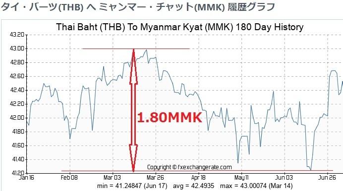 タイ国内では、ミャンマーの通貨チャットは、ほとんど両替の対象となっていません。