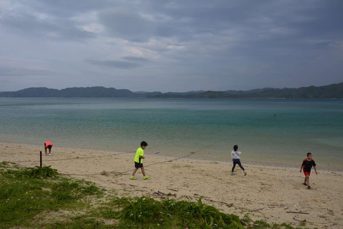 洒落た宿泊施設もあり、子供たちが海岸で遊んでいました。