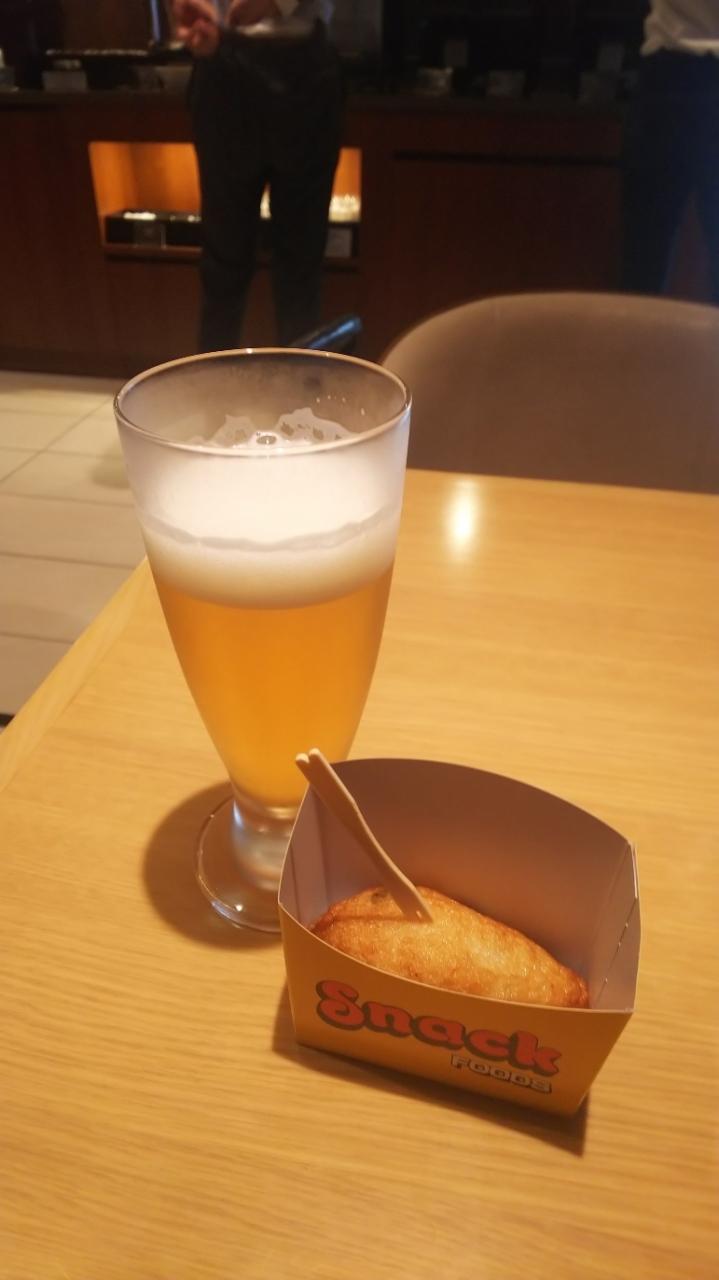 帰りの空港で「さつま揚げ」を買い、ラウンジでビールと一緒にいただきました。