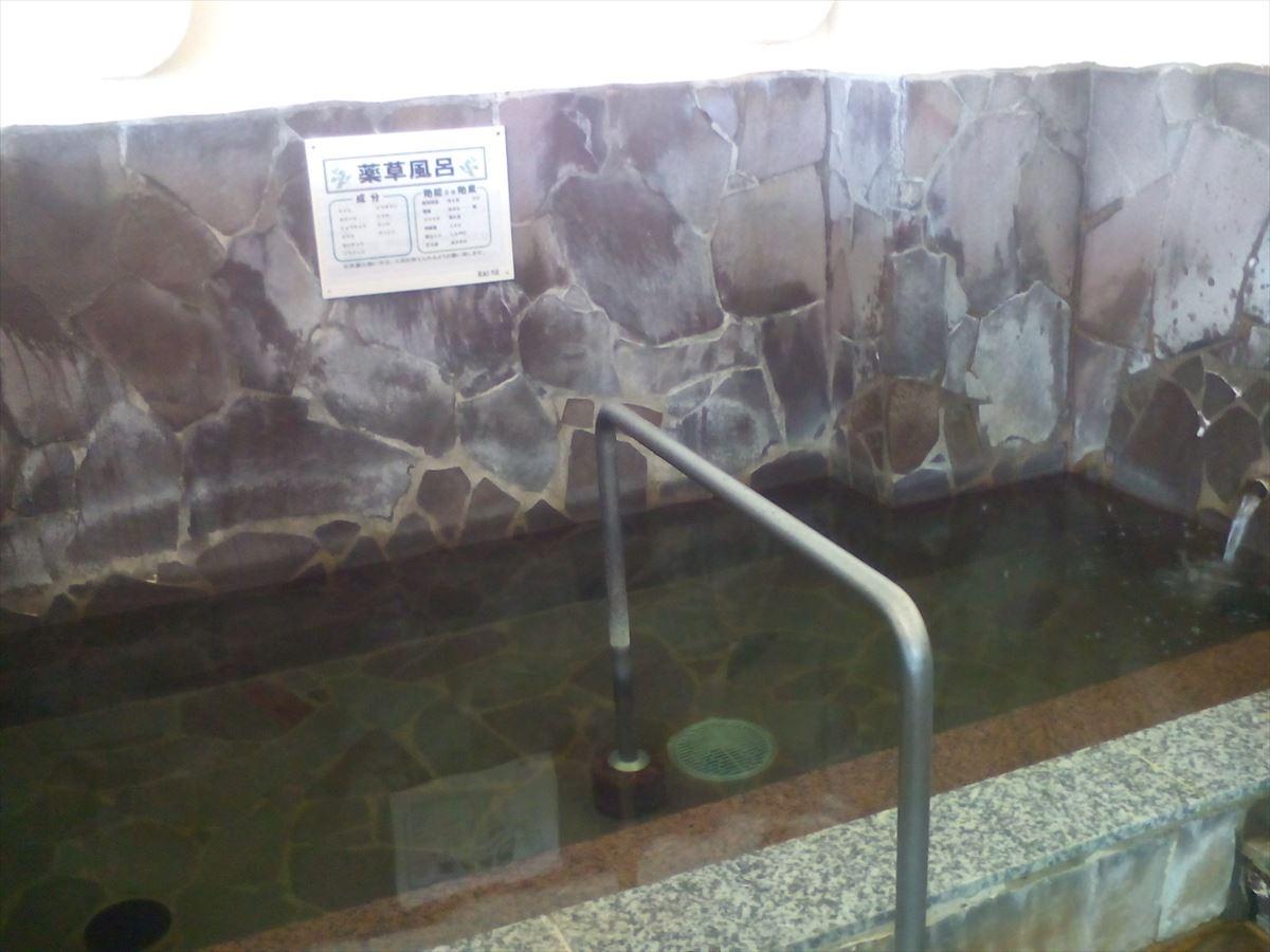 薬草風呂はヨモギ、その他10種類ほどが袋に入れて漬け込んである。例えれば肉骨茶に浸かっている感じ。