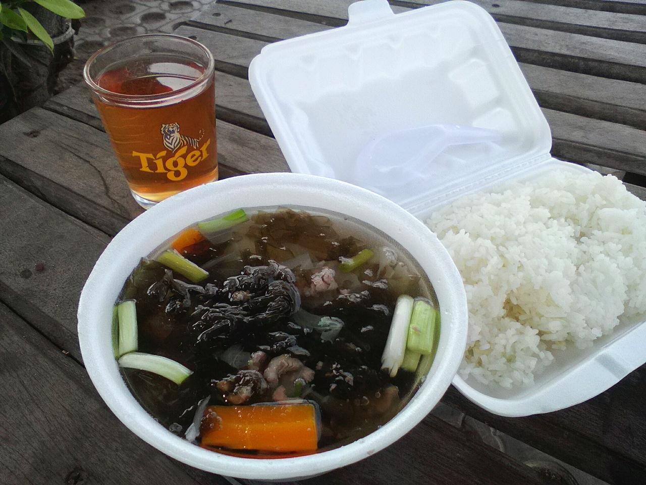 海苔と鶏肉のスープ&ライス。計4000リエル。