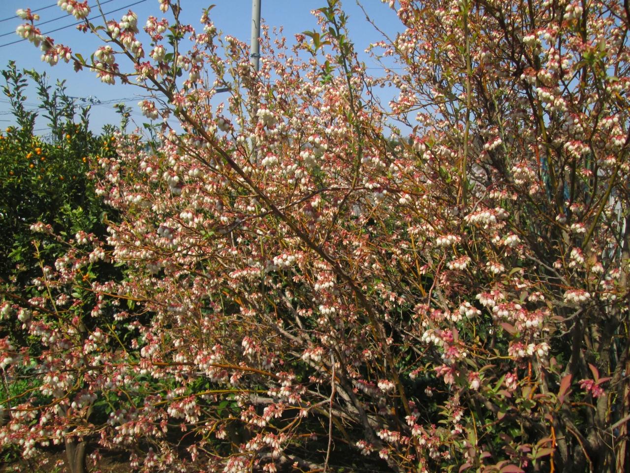 ブルーベリーの花の間から「鯉のぼり」が見えました。