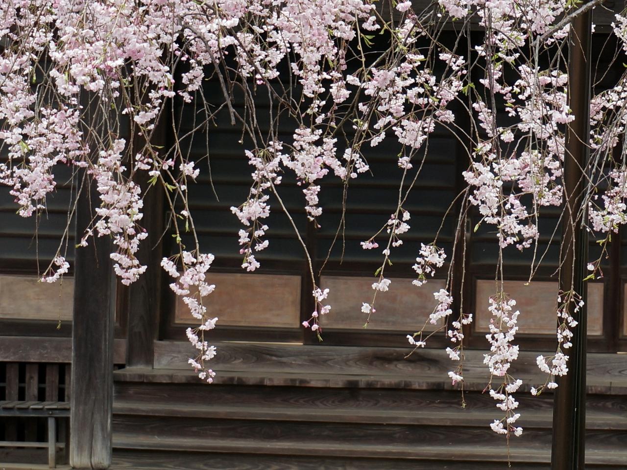 境内には場所を替えてもう一本枝垂れ桜があり、こちらも満開の花を咲かせています。