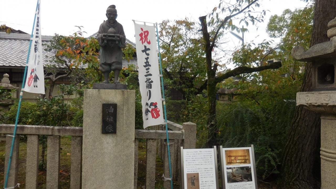 平安時代にえごま油を搾る道具がここで発明され、油座の本所になったそうです。司馬遼太郎の「国盗り物語」で最初に松波庄九郎(後の斎藤道三)が登場する場所です。