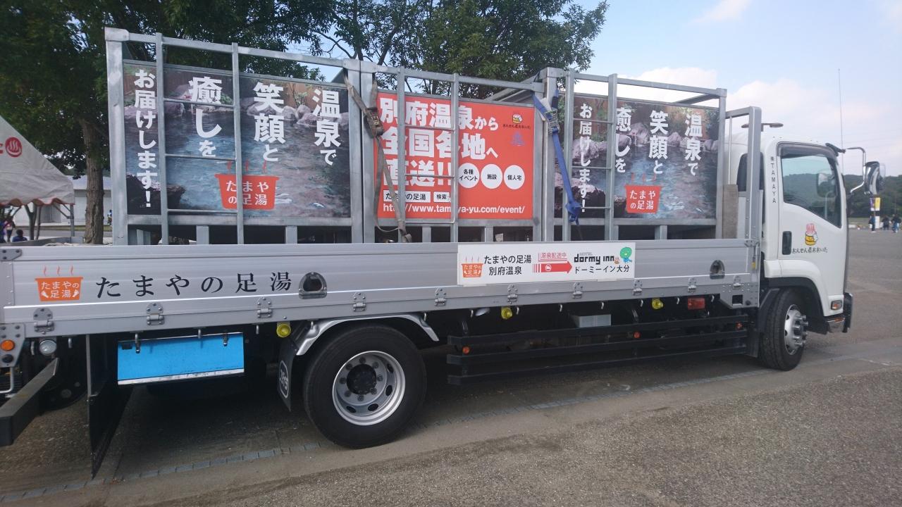 スタジアムには温泉県らしく足湯が。もちろん温泉です。
