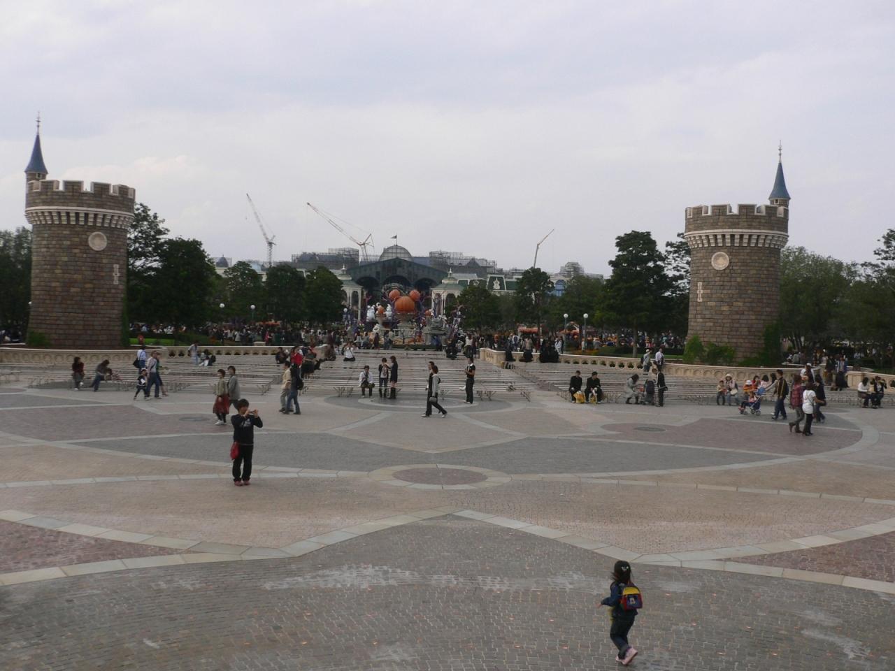 久しぶりに『シンデレラ城』のテラスからパチリ!向こうに見えるクレーンは『ディズニーランドホテル』建設工事中のものです。