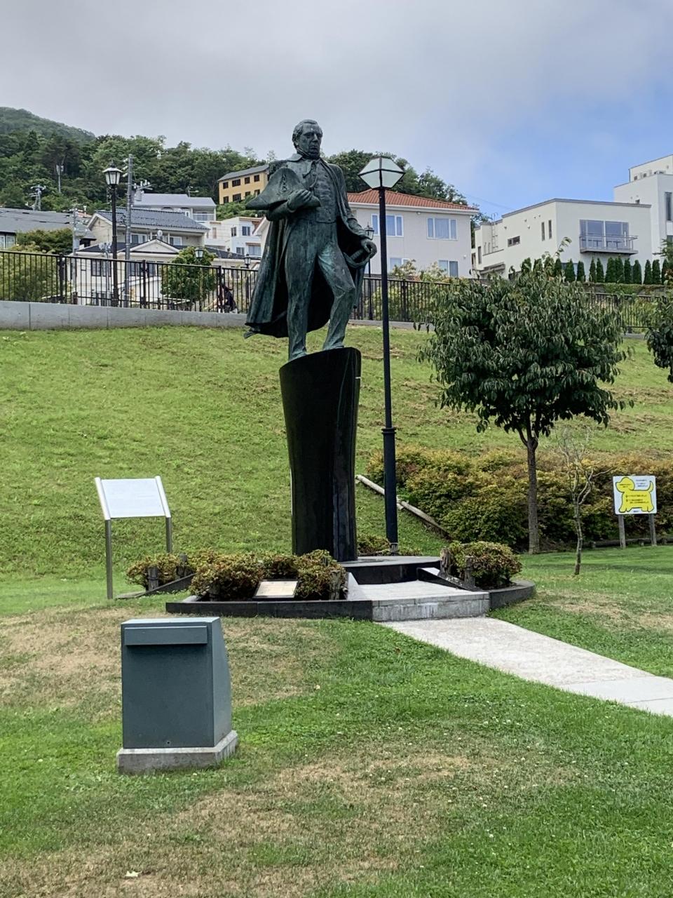 駐車場には、ペリーの銅像がありました。実はペリーは函館開港後、実地測量のために函館には訪れているのです。それを記念して銅像があるとか。