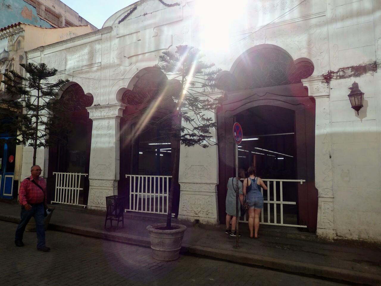 オビスポ通りは何回ウロウロしただろうか。おや、建物内を覗いている人がいる。何だろう?