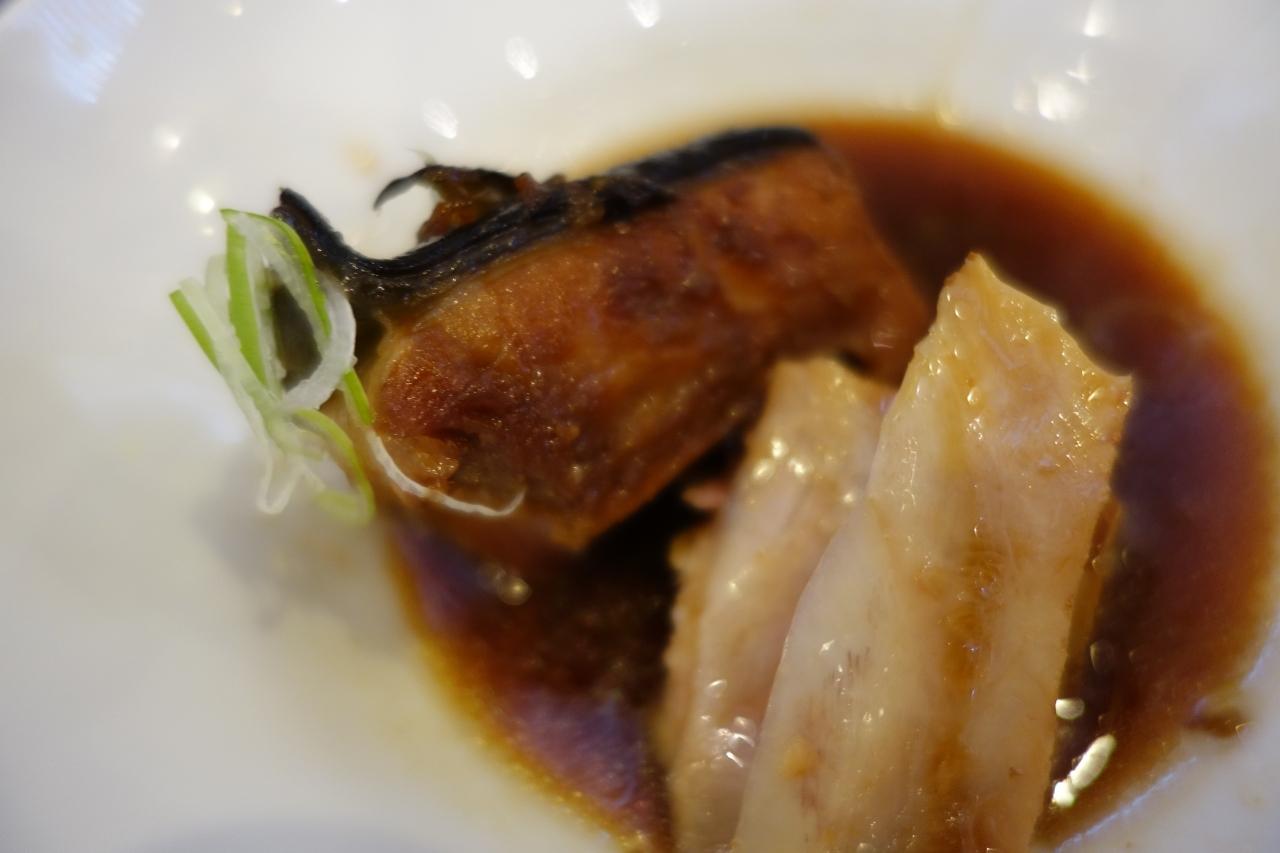 勘八カマ煮付け。手前の白いんは、ほぼ骨。やけど、向こう側は、ほぼ身です。食べ応えあるね。