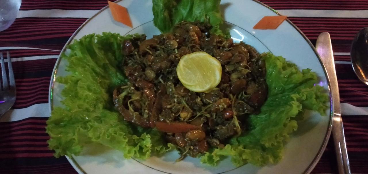 茶葉をつかったサラダ。茶葉を使うことも多いらしい。