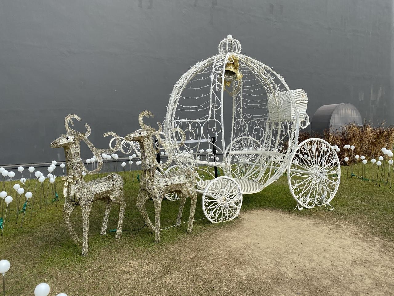 白い馬車のオブジェ。