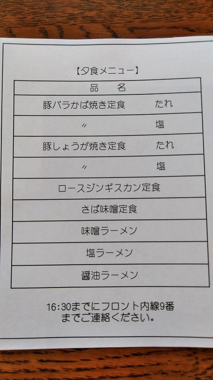 手続き済ませると夕食はここから選んで下さい・・と紙渡されて・