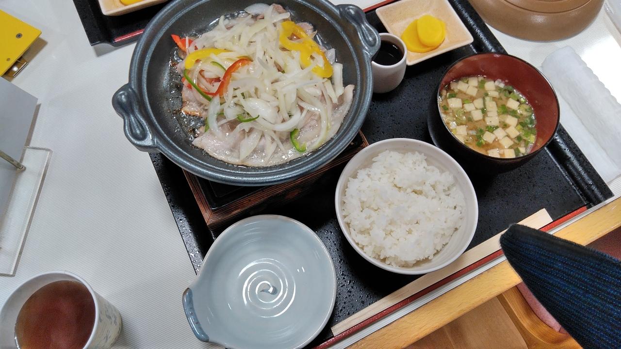 とりあえずお部屋で協議・豚しょうが焼き定食に落ち着きました(笑)