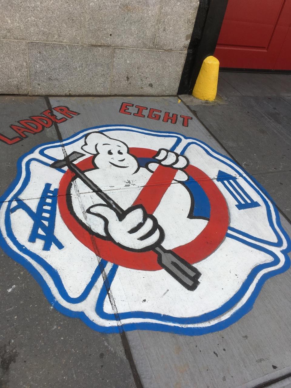 トライベッカまで足を延ばして、映画『ゴーストバスターズ』の基地となった消防署。署内はセットですが、建物はココです。この扉から出動します。