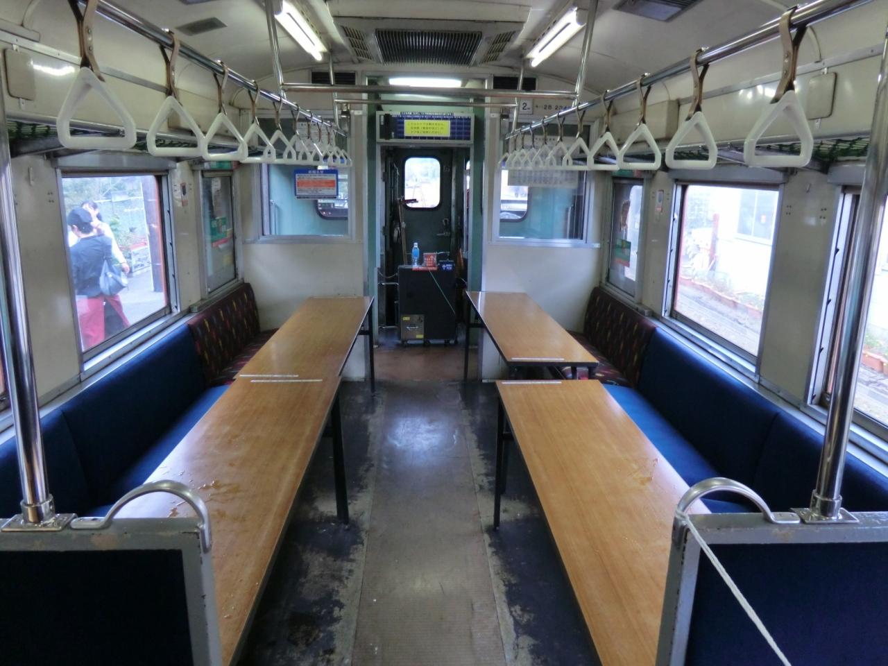 運転台に近いロングシート部分は、レストラン列車時、配膳スペースとなります。
