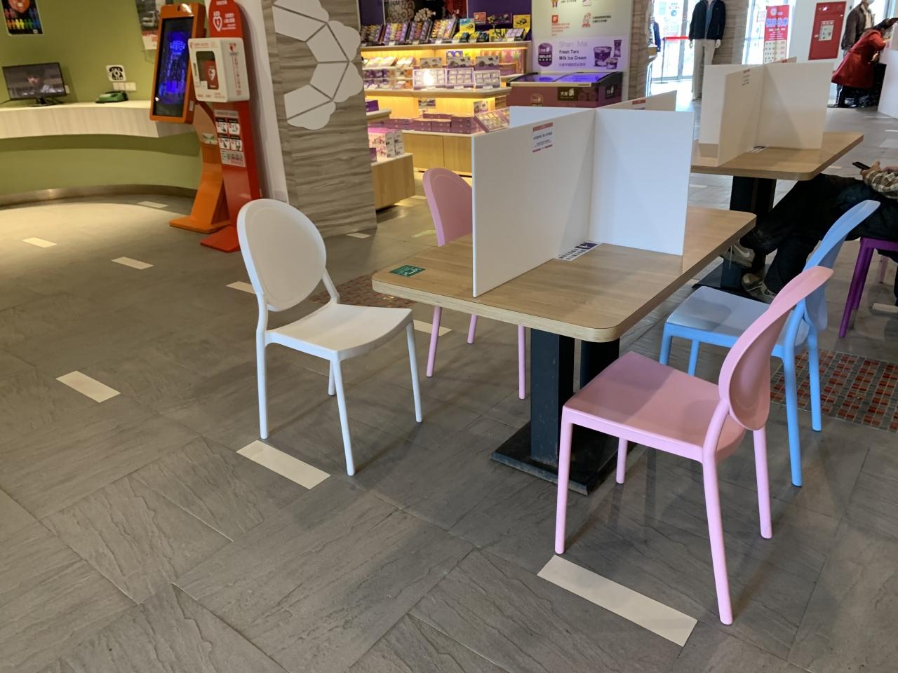 サービスエリアのテーブルは仕切りが。コーヒー仕入れて出発です。