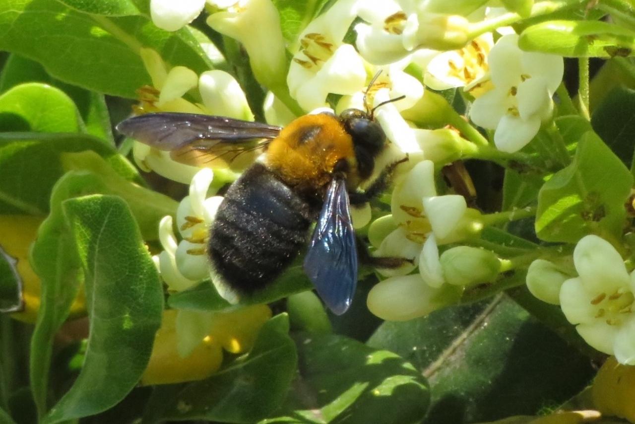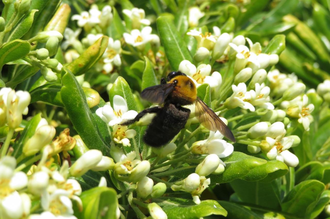 3cmくらいある大型の蜂で、羽音も凄いので、ちょっと怖いが、刺すことは滅多にないらしい。
