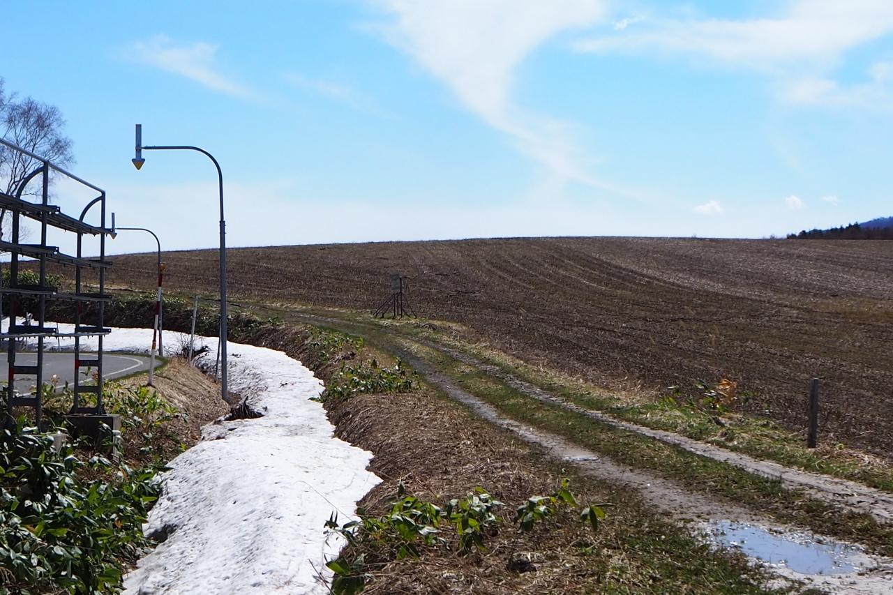 北側の路肩には、まだまだ溶けない雪が残っている。