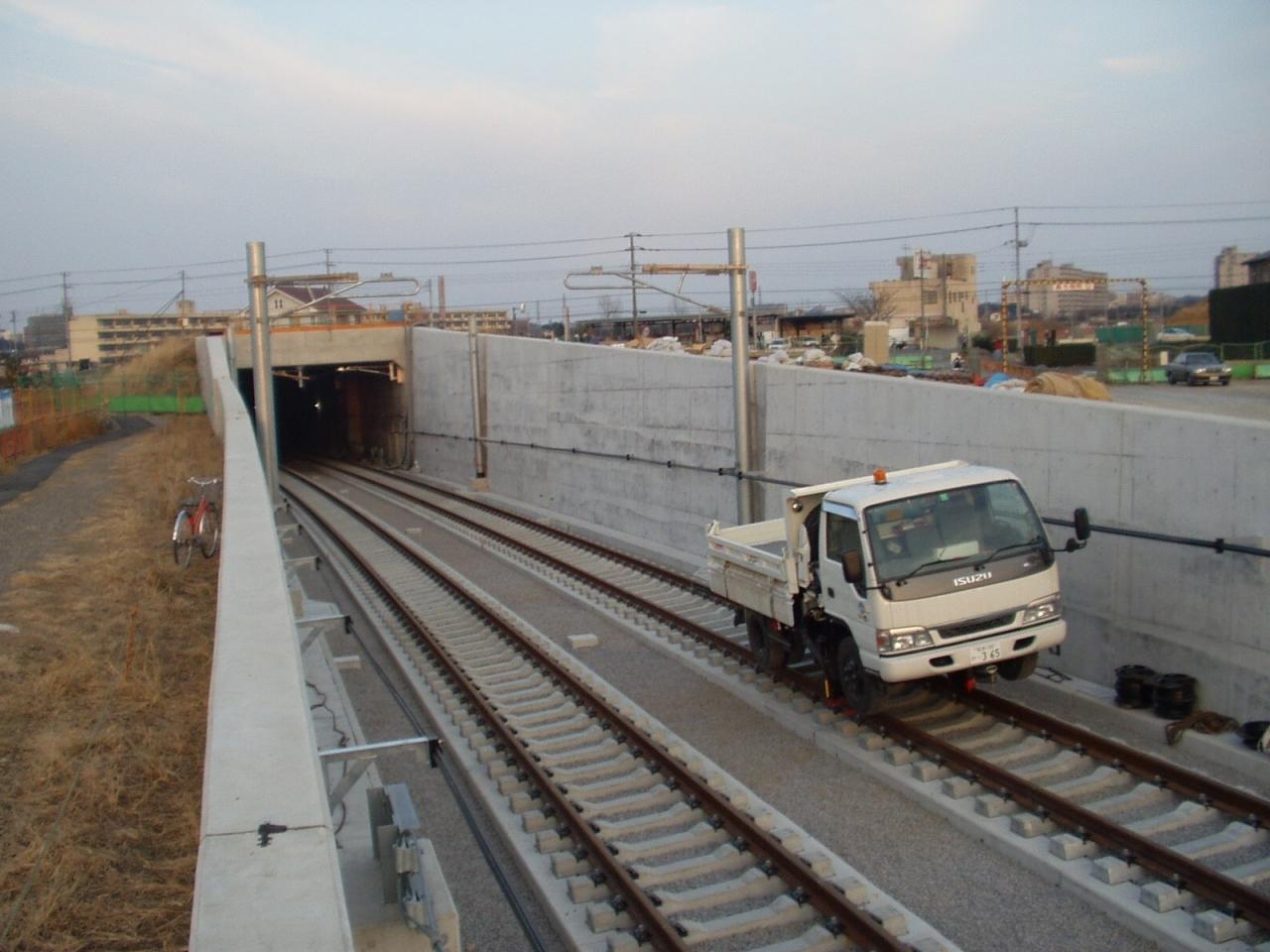 2005年8月の開業まで残り1年半、この頃は軌道工事が終わって電気工事へ移行している頃ですね。 -