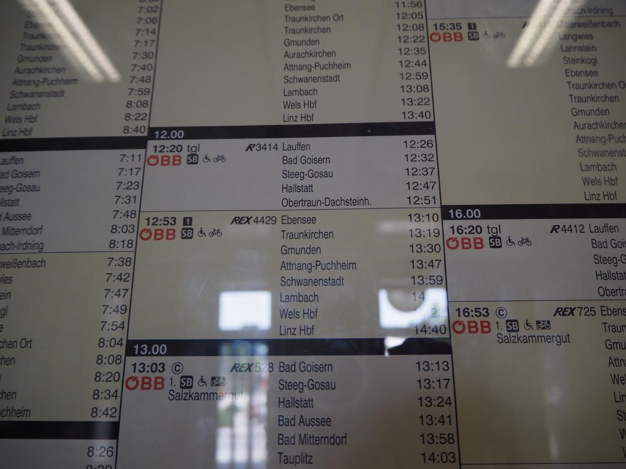 バートイシュルでもアットナング・プッハイムでも余裕がなくて撮れなかったので、電車の写真。これは列車番号と車両番号と行先の表示かな。