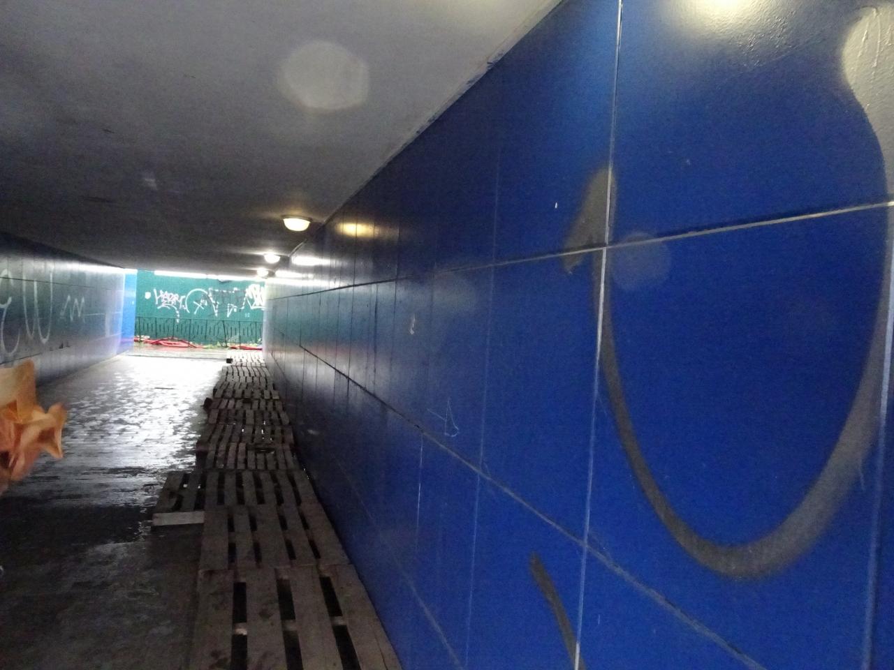 私たちは車で上に上がったので、皆さんと反対で展望台からケーブルカーの方面に降りています。ロータリーの下のトンネルをぬけていきます。