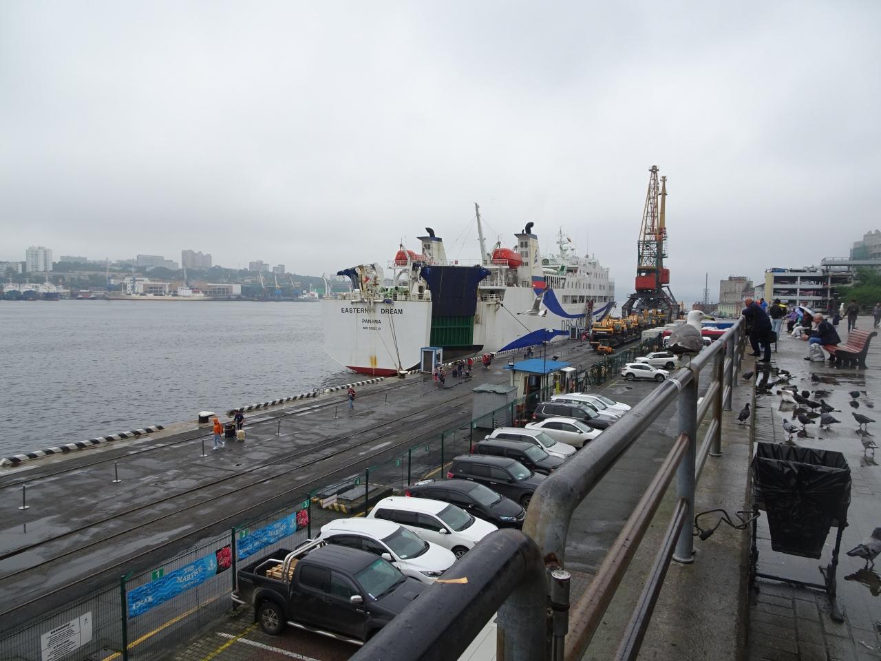 ウラジオストク駅横の海上ビルにやって来ました。この岸壁に豪華客船が泊まります。真夏なのに寒そうですね。