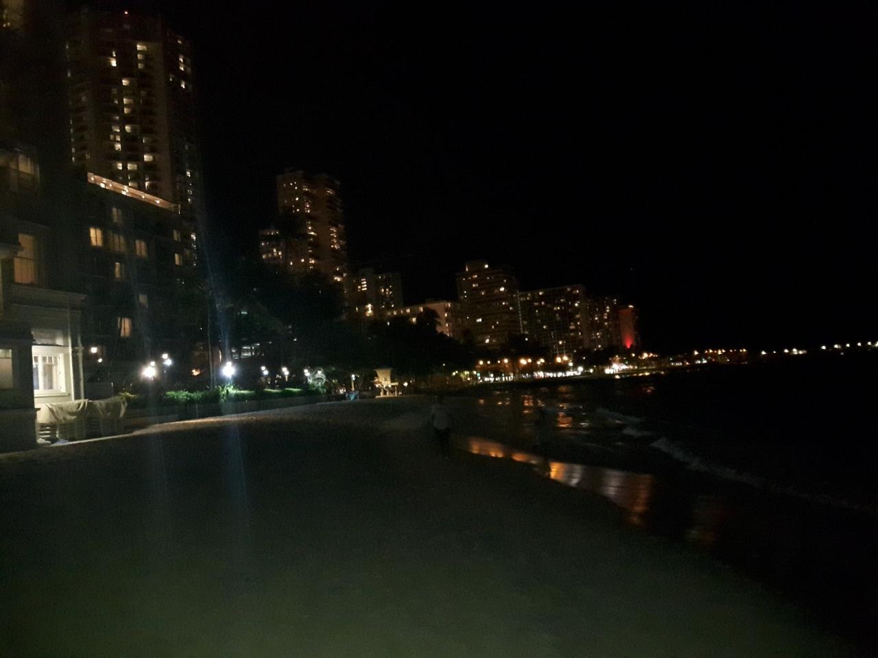 夜のワイキキビーチウオークを歩きながらホテルに戻りました。
