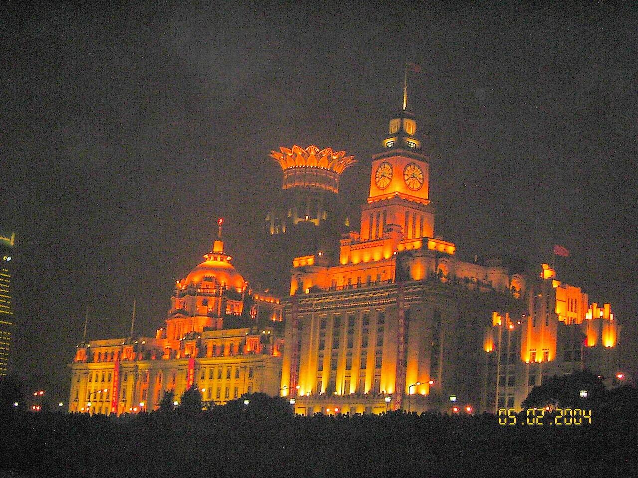 左から旧香港上海銀行ビル(上海浦東発展銀行)、江海関(上海海関)、旧交通銀行ビル(上海総工会本部)だそうです