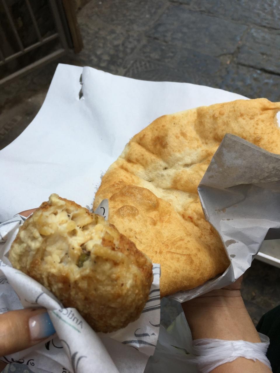 メニューは沢山ありましたがイタリア語が読めなかったので、私の前に並んでいた方が受け取っていたやつを見て、「同じものくれ」というジェスチャーで注文。