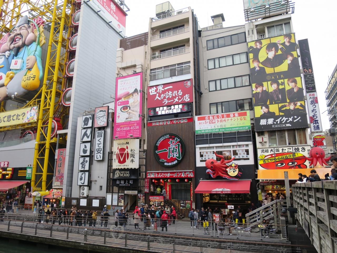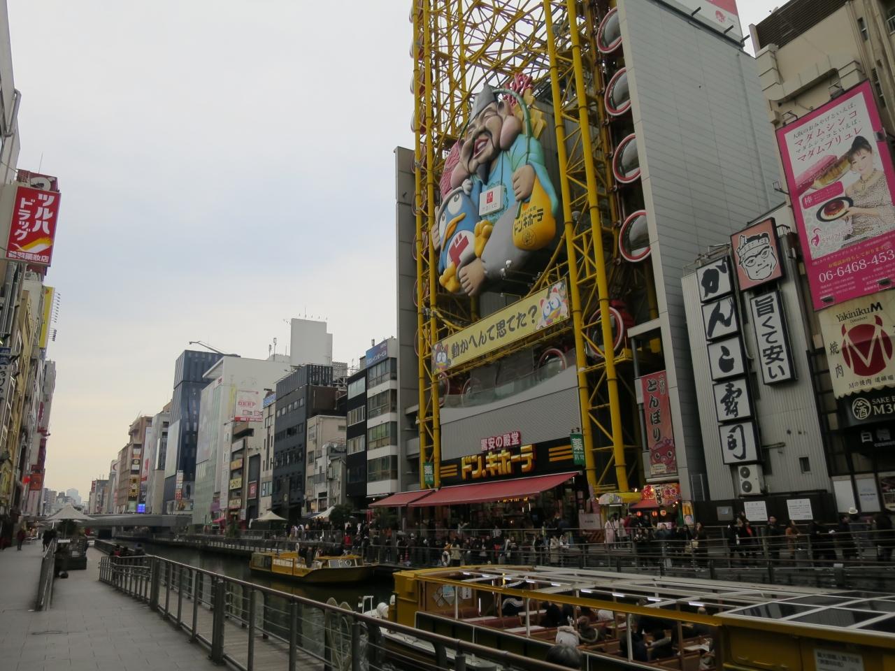 道頓堀に到着。ここでは、たこ焼き、明石焼きの食べ比べ。