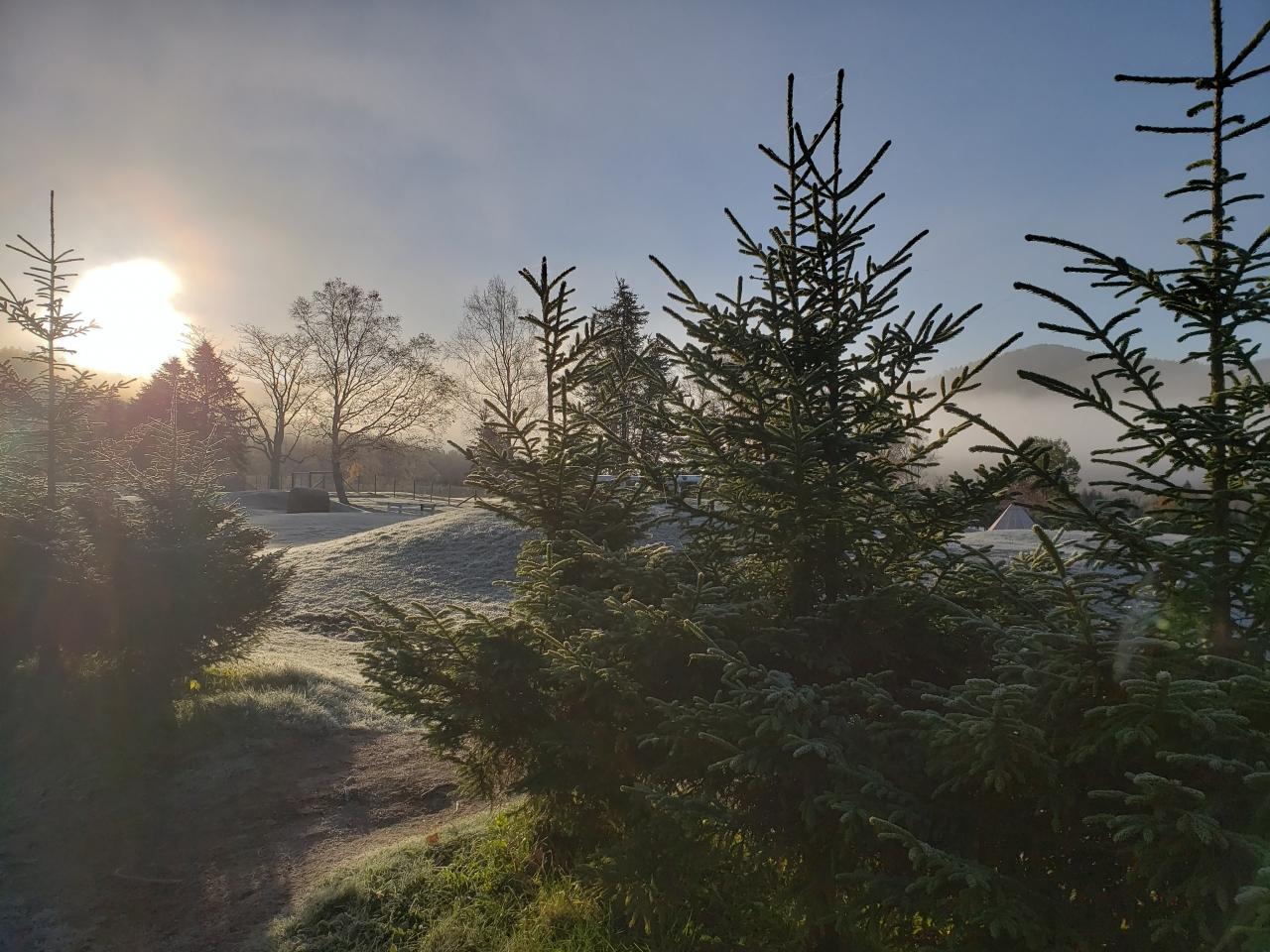ホテルの敷地内で朝靄の散策も楽しいです。