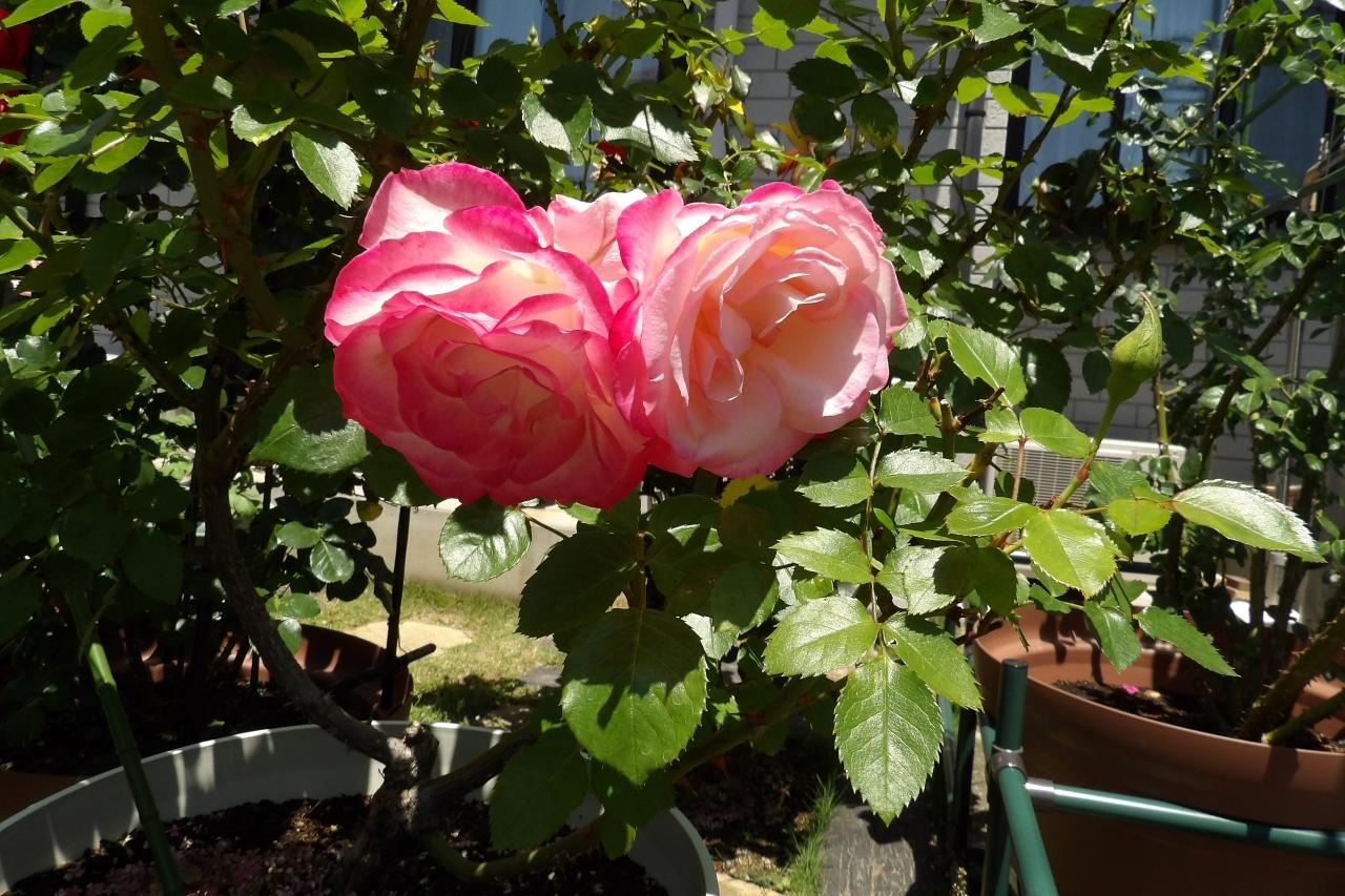 野庭団地から鎌倉街道には道路が続いているが、昔からある光明寺は日野川が流れる平場にあり、山裾の裏山には墓地があり、良くあるパターンである。しかし、さらに山中はマンションなどが建つ住宅地であり、山頂には野庭団地が広がっている。光明寺は狭い曲がった道に門前がある。前にはジャガイモ畑がある。その畑の横にこのお宅があり、コンクリート舗装された庭には鉢植えのバラが何鉢もある。その花の種類の多さといずれも綺麗な花を咲かせているので思わず見とれてしまった。バラは綺麗な花を咲かせるが、それは手入れしてのことだ。庭の片隅にバラの花弁ばかりで一杯になったゴミ袋が置かれている。咲いたバラの花が盛りを過ぎると花を摘んで綺麗な花だけを残しているのだ。