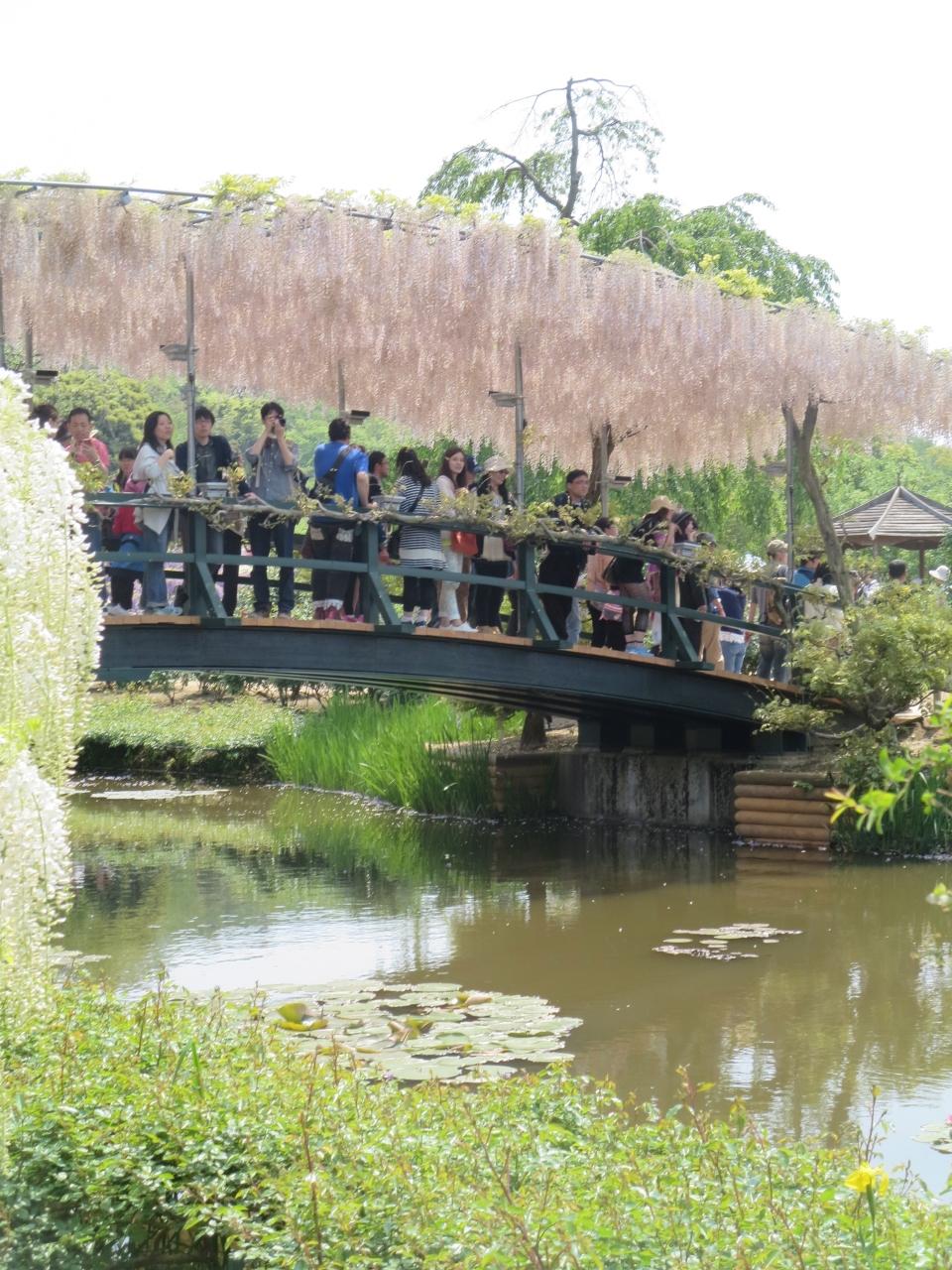 橋の上にうす紅藤がトンネルになっていて綺麗でした。
