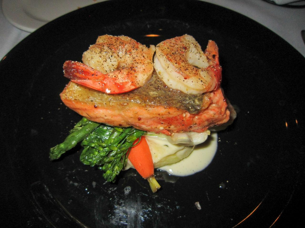 メインはサーモンとエビ。