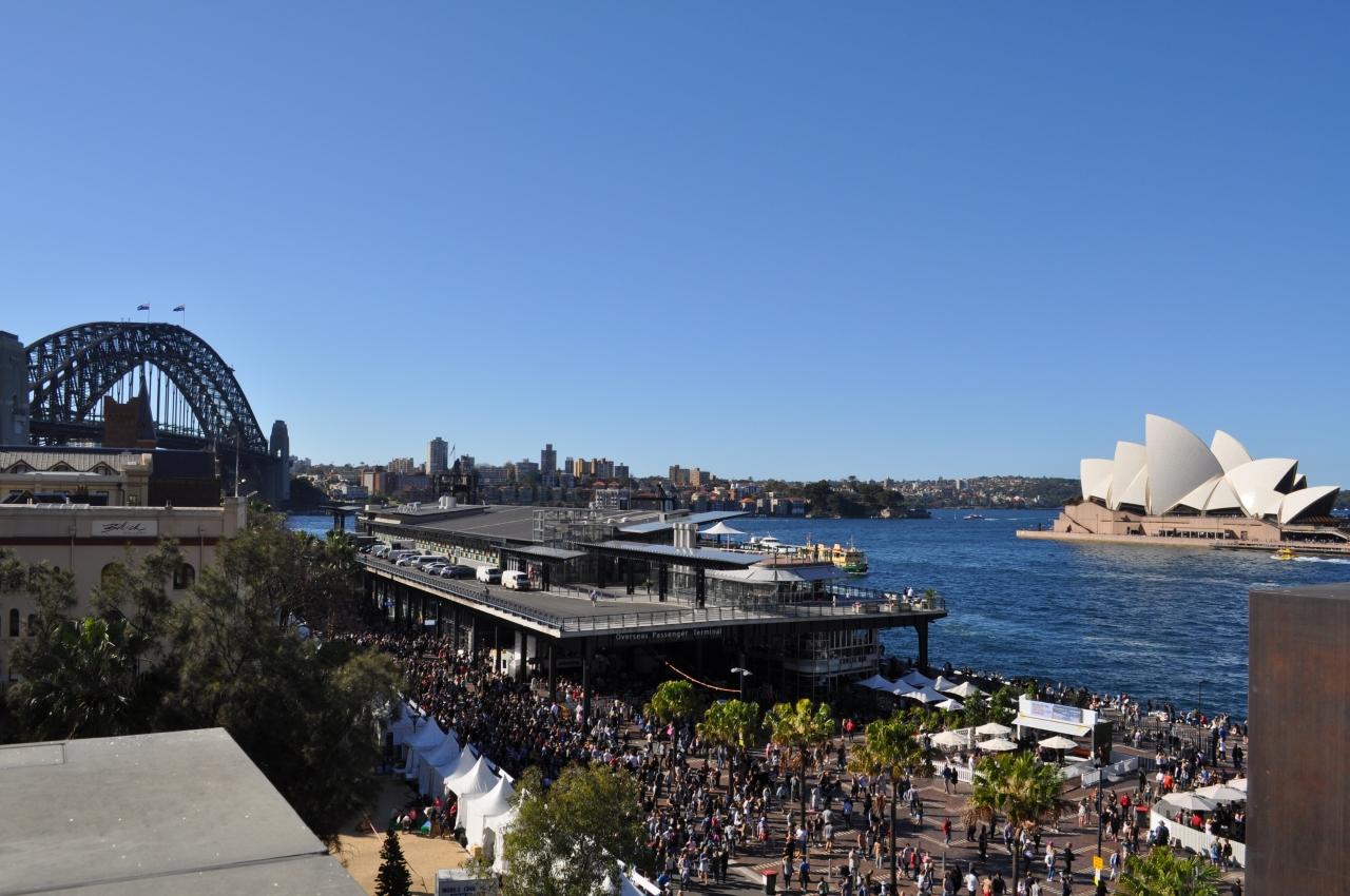 ということで、シドニー着。ついたらお腹空いたので、サーキュラーキーにあるMCAカフェへ。ここはオペラハウスとハーバーブリッジが見えていい感じ。今日はスイーツ祭りをやっていて、めさんこ人が多いです。