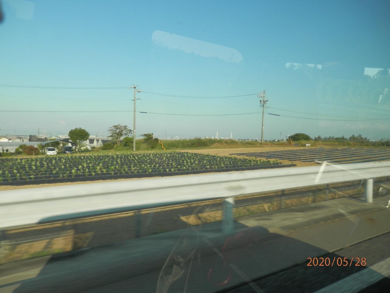 200529-0907.金曜。帰りの常滑市。高台の道路から海が見えています。観光バスならもっと景色が違うのだろうのに。
