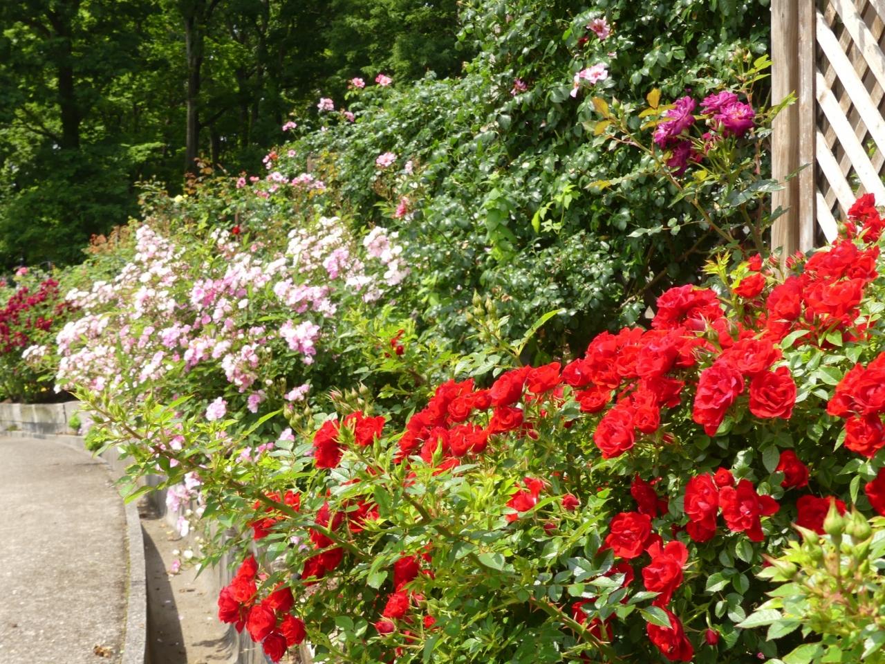 上り坂の右側、ここがローズガーデンかどうかは分かりませんが、種類も量も多いので、見応えがあります。
