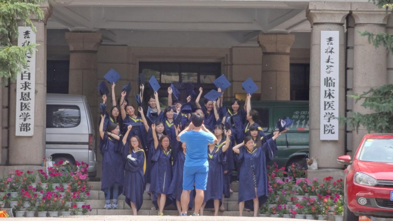 さらに北上すると、同じく右手に建っているのが偽満州国国務院旧址。満州国の行政機関で、国会議事堂の意匠を基に1936年に完成。確かに国会議事堂に中国式の屋根を載せたような不思議なデザインだ。当時は地下道で長春駅と繋がっていたとか。現在は吉林大学で、この内部は非公開で見学不可と「地球の歩き方」に書いてあった。そこで、ちょうど卒業式を終えた女学生たちが門の所にいたので、「毕业吗?」(卒業ですか?)と話しかけた。「対」(そうです)と答えたので、「Congratulations!」、「Thank you」などと親しげに話しながら、当然のような顔で一緒に中に入ってしまった。 -
