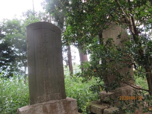 写真で数えて40基はあります。百庚申ですが社殿左前の天保十五年(1844)から始まり鳥居方向へ弘化 ・嘉永五年(1852)まで95基が並んでいます。文字庚申の間に青面金剛塔像搭が建てられてます。そのほかにも文化四年文字青面金剛塔や像搭なども並んでいます。