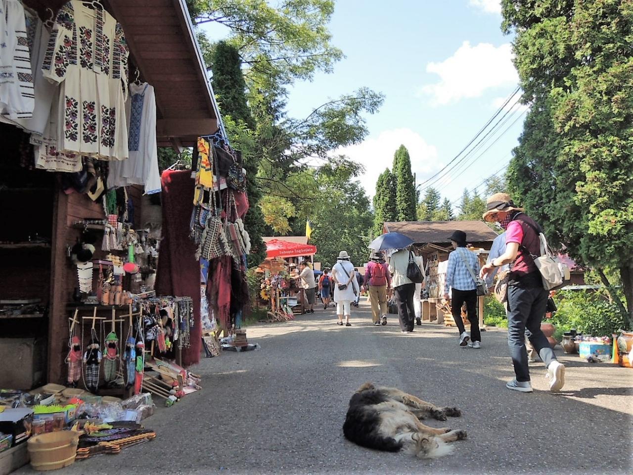 左右に土産物店が並ぶ道に子犬が寝ている どこぞでもこんな場面をアップしたな
