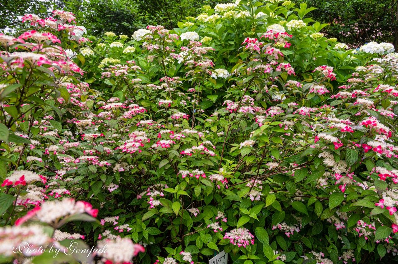 境内には70種1500株の紫陽花が植えられている。品種の名前が書かれたパネルが設置されているので、図鑑的に紫陽花の写真を撮るには都合が良い。いちいち品種名を覚えようという根性はないが・・・