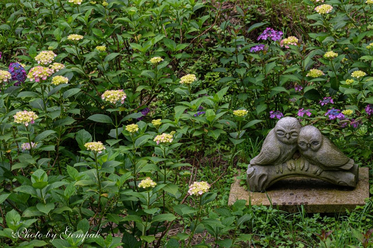 福ふくろうロードに咲き乱れる色々な紫陽花たち